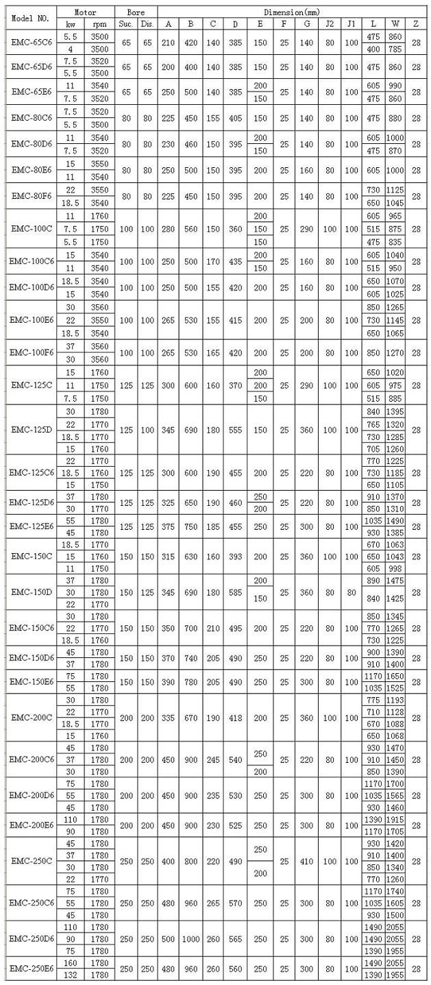 EMC船用水泵 機組尺寸