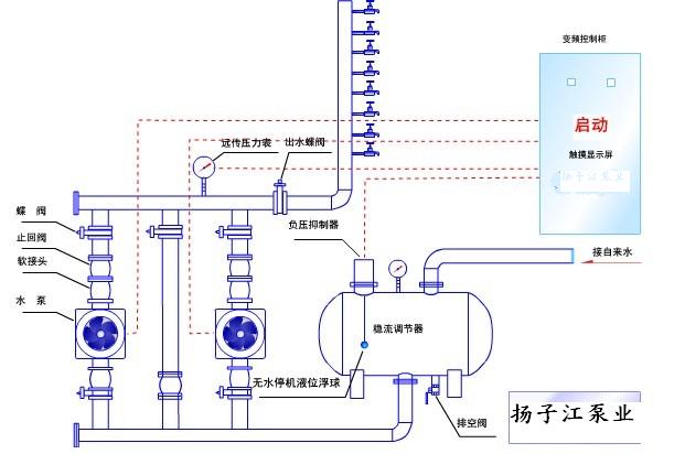 無負壓變頻恒壓供水設(shè)備是一種新型的清潔衛(wèi)生、高效節(jié)能的供水設(shè)備,也被業(yè)界稱為管網(wǎng)疊壓供水設(shè)備。該設(shè)備為全封閉式結(jié)構(gòu),不需要建造任何形式的水池,避免了供水二次污染。直接將食品衛(wèi)生等級的不銹鋼穩(wěn)流調(diào)節(jié)罐作為進水儲水緩沖裝置直接與自來水管道相連,充分利用自來水管網(wǎng)原有壓力能源,在同樣供水需求的情況下,無負壓變頻供水可選擇功率較小的水泵及控制設(shè)備。同時在夜間小流量用水情況下利用市政供水水壓直接供水而無需啟動水泵。相比傳統(tǒng)帶水池的供水設(shè)備,該設(shè)備節(jié)約了大量的電能和設(shè)備投資,其節(jié)能效果可高達50%以上。運行過程中,穩(wěn)流調(diào)節(jié)罐配備的真空消除器可自動消除設(shè)備運行過程中對管網(wǎng)所產(chǎn)生的負壓,保證了正常供水的同時設(shè)備不會對市政管網(wǎng)其他用戶造成影響。無負壓變頻供水是目前高效節(jié)能的供水設(shè)備,特別適合城鎮(zhèn)自來供應(yīng)較為穩(wěn)定和充足的場合使用。