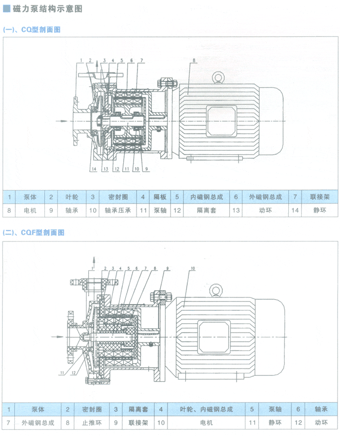 CQ型不銹鋼磁力驅(qū)動(dòng)泵結(jié)構(gòu)剖面圖