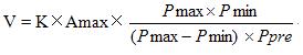 Pmin = 水泵的低工作壓力(水泵啟動(dòng)時(shí)系統(tǒng)的壓力,此處壓力為絕對(duì)壓力)