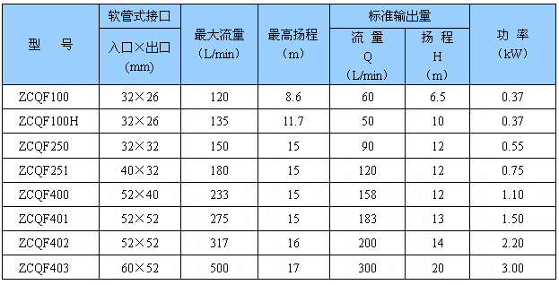 2、ZCQF型系列四氟耐腐蝕自吸泵即有CQF型磁力驅(qū)動泵的功能,又集自吸于一身,不需底閥和引灌水,具備了自吸性能好,自吸 時間短,效率高,并能在無液的情況下而空載運轉(zhuǎn),自吸高度4米,因此它具有良好的抗腐蝕性能,并可以使輸送介質(zhì)免受污染。