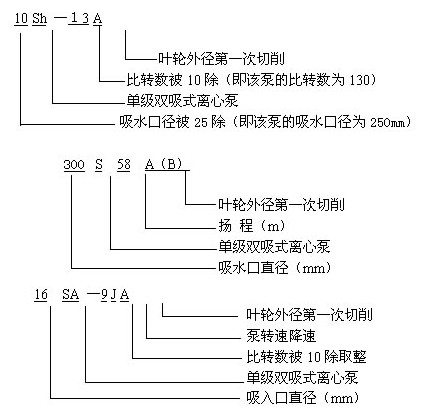 sh/S/SA雙吸中開(kāi)離心泵型號(hào)意義: