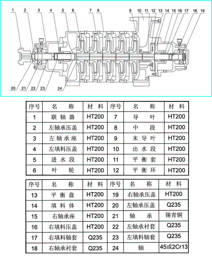 TSWA型臥式清水多級泵結(jié)構(gòu)圖