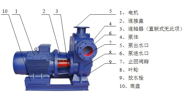 ZSL強自吸.高揚程.大流量.直聯(lián)式雙吸自吸泵的水泵結構圖