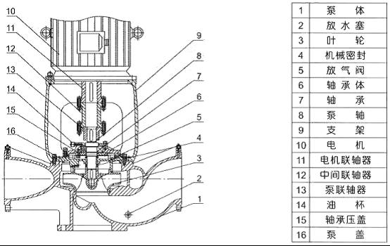 ISGB便拆立式管道離心泵結(jié)構(gòu)圖: