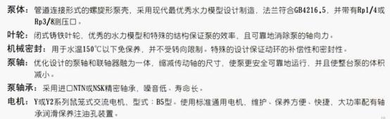 2、輸送介質(zhì)為清水或物理化學(xué)性質(zhì)類似清水的其它液體。(輸送介質(zhì)帶有細小顆粒的應(yīng)在訂貨時另行說明,以便裝配耐磨式機械密封)。