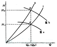 流量QA是系統(tǒng)設計流量,在此流量下水泵揚程為HB即可。實際選擇的水泵揚程為HS。為了保證QA,則要改變管路特性,即通過關小水泵進出口的閥門,使管路特性曲線由Ⅰ變?yōu)棰?顯然,ΔP=HB-HA完全通過閥門節(jié)流, 這是非常不經濟的,也是工程中需避免出現的情況,如果冬季運行采用同一套泵工作,由于流量變小,節(jié)流更嚴重,就更不經濟,甚至造成水泵工作點不穩(wěn)定[2].