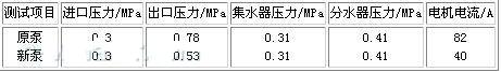 解決辦法:更換一臺低揚程水泵,測試數據如表2(新泵).對比表2數據,電機電流由82A降為40A,其運行經濟性不言而喻.