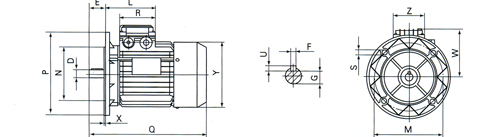 1.Y2系列電動機機座外輪廓呈四方形兼圓形,散熱片呈垂直,水平平行分布,全部采用鑄鐵結(jié)構(gòu)。另外H63~112還兼有鋁合金壓鑄結(jié)構(gòu)。