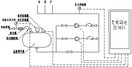 1、 微機(jī)設(shè)定給水泵工作壓力,即用戶用水壓力。生活給水時(shí),設(shè)備運(yùn)行在低壓變頻狀態(tài),由變頻器時(shí)刻監(jiān)控管網(wǎng)壓力,對(duì)反饋值和設(shè)定值進(jìn)行運(yùn)算和比較計(jì)算。若管網(wǎng)壓力高于用戶所需壓力(設(shè)定壓力)則自動(dòng)減少輸出頻率,從而使水泵轉(zhuǎn)速減少,出水量減少。若管網(wǎng)壓力低于用戶所需壓力(設(shè)定壓力)則自動(dòng)增加輸出頻率,從而使水泵轉(zhuǎn)速增加,出水量增加,當(dāng)一臺(tái)水泵運(yùn)行滿足不了用戶需要時(shí),其它水泵自動(dòng)投入運(yùn)行以保證用戶的使用壓力。