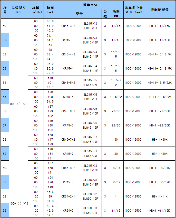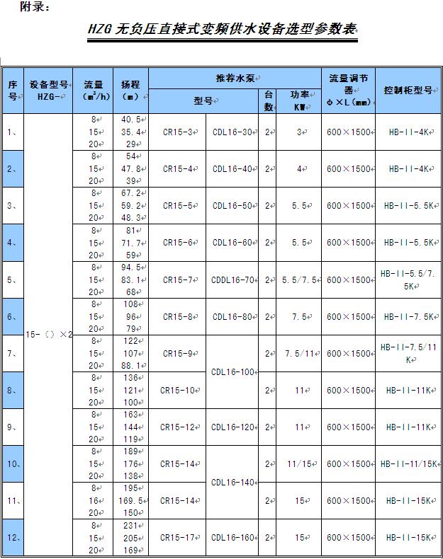 “HZG無(wú)負(fù)壓直接式變頻供水設(shè)備”主要指標(biāo)如下: