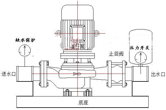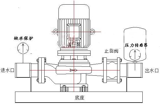 鑄鐵立式多級離心式自動增壓泵:增壓泵采用鑄鐵VP立式多級離心泵或鑄鐵DL立式多級離心泵,管路部分默認(rèn)采用鋼塑管。