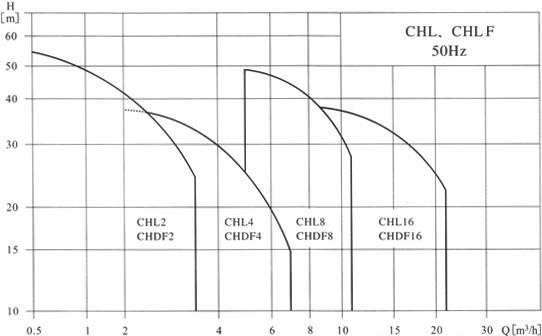 ■ CHL型不銹鋼臥式輕型多級離心泵性能曲線圖: