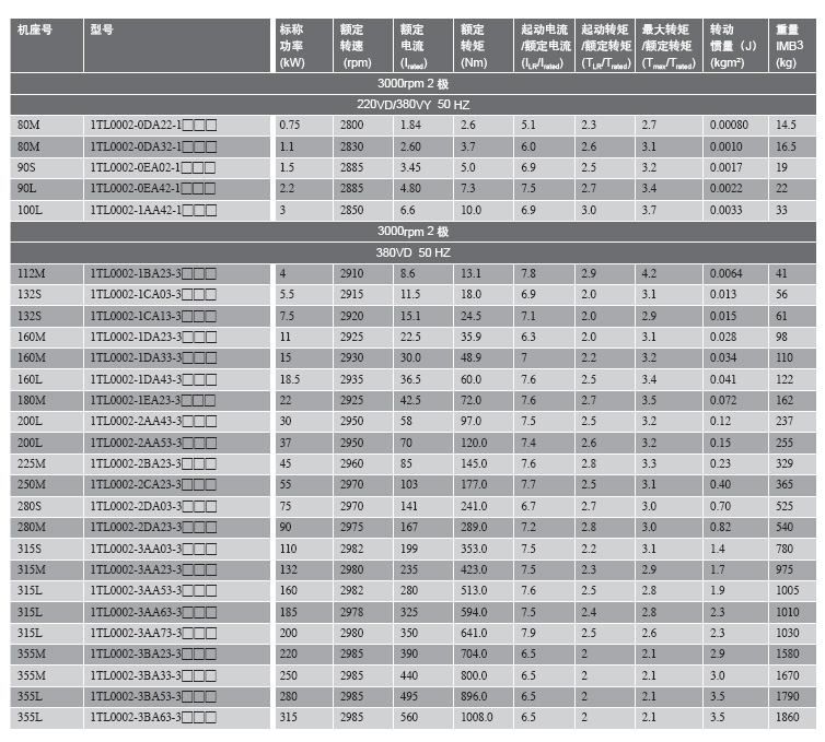 管道離心泵配西門子貝得變頻調(diào)速三相異步電動機選型技術(shù)數(shù)據(jù)表