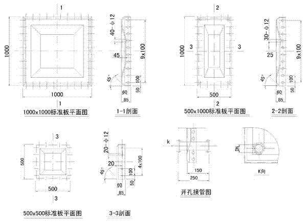 注:三種板塊均可在板內(nèi)開(kāi)孔接管,其開(kāi)孔位置應(yīng)盡量向板塊中心設(shè)置,而開(kāi)孔接管外園與箱板翻邊的小距離不小于30