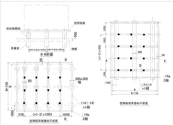 裝配式鋼板給水箱型鋼底架基礎(chǔ)圖