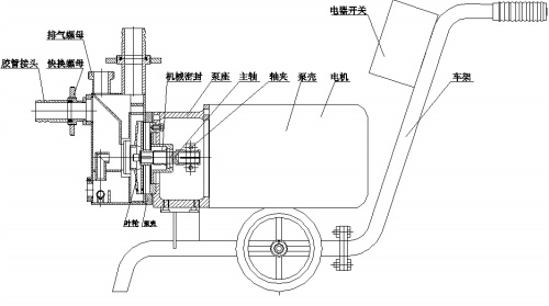 移動式果汁飲料,酒類,醬油及醫(yī)藥,石油化工等近似水類液體的輸送自吸泵結(jié)構(gòu)示意圖