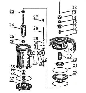 31.出線    32.封環(huán)(Φ74×3)33.接線板    34.封環(huán)(Φ50×3)   35.墊片    36.軸承8204   37.下蓋