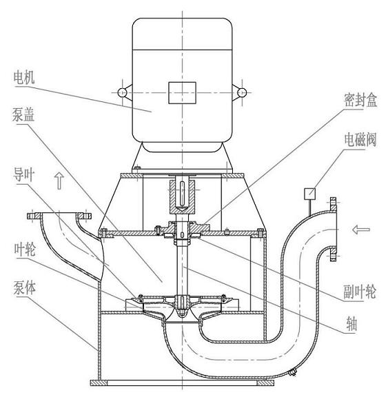 由于自吸泵泵體的特殊結構,水泵停轉后,泵體內(nèi)存有一定量的水,泵再次啟動后由于葉輪旋轉作用,吸入管路的空氣和水充分混合,并被排到氣水分離室,氣水分離室上部的氣體溢出,下部的水返回葉輪,重新和吸入管路的剩余空氣混合,直到把泵及吸入管內(nèi)的氣體全部排出,完成自吸,并正常抽水。水環(huán)輪式自吸泵是將水環(huán)輪和水泵葉輪組合在一個殼體內(nèi),借助水環(huán)輪將氣體排出,實現(xiàn)自吸。當泵正常工作后,可通過閥截斷水環(huán)輪和水泵葉輪的通道,并且放掉水環(huán)輪內(nèi)的液體。射流式自吸泵,由離心泵和射流泵(或噴射器)組合而成,依靠噴射裝置,在噴嘴處造成真空實現(xiàn)抽吸.