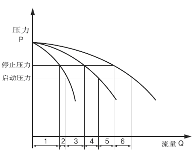 水泵剛運(yùn)轉(zhuǎn)時(shí),先給壓力罐補(bǔ)滿水,隨著壓力增大達(dá)到設(shè)定壓力后,水泵停止。 |