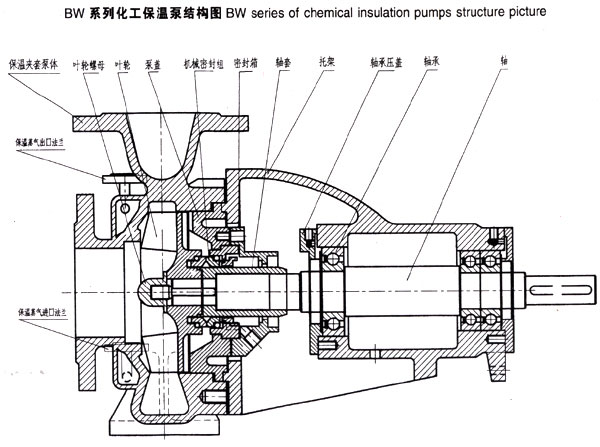 IR耐腐蝕保溫泵,高溫恒溫化工泵,管道輸送泵結(jié)構(gòu)圖: