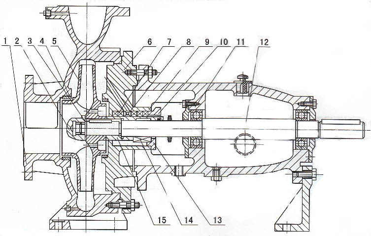 用戶可依據(jù)被運(yùn)送介質(zhì)的腐蝕性程度對(duì)泵的過流有些首要零件選用不同資料。泵的過流有些首要零件的資料及其代號(hào)有下列五種: