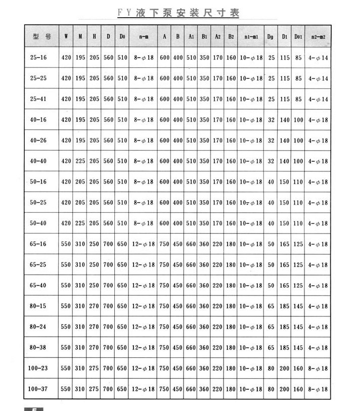 FYB型不銹鋼液下泵參數(shù):
