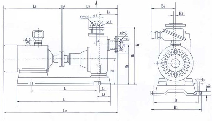 CYZ-A防爆自吸銅葉輪汽油泵,不銹鋼自吸煤油泵,耐腐蝕自吸柴油泵結構圖及安裝尺寸