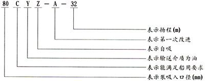 CYZ-A防爆自吸銅葉輪汽油泵,不銹鋼自吸煤油泵,耐腐蝕自吸柴油泵型號意義: