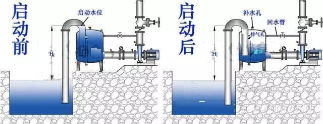 當(dāng)水泵啟動(dòng)之后,水泵會(huì)先抽取真空罐內(nèi)的水,真空罐內(nèi)的液位下降,管內(nèi)形成真空,壓力低于水池液面的大氣壓力,此時(shí)水就會(huì)沿著吸入管進(jìn)入真空罐。當(dāng)水泵的排液和吸入管路的進(jìn)液達(dá)到平衡,真空罐內(nèi)的液位也就不會(huì)再下降,達(dá)到穩(wěn)定工作狀態(tài)。泵也就達(dá)到了額定工作狀態(tài),源源不斷地將水輸送出去(公眾號(hào):泵管家)。