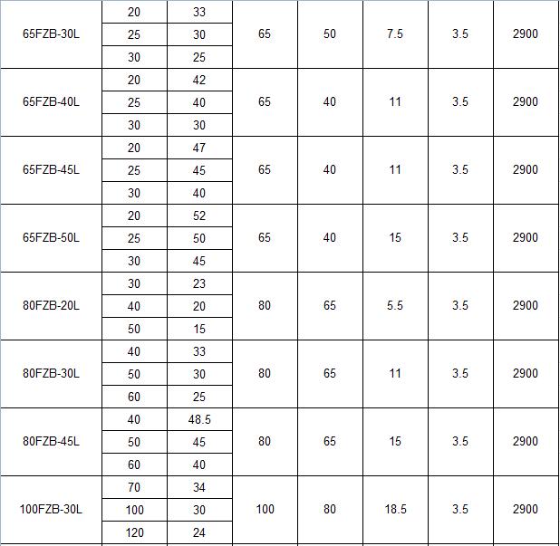 FZB塑料耐酸堿自吸泵規(guī)格和型號