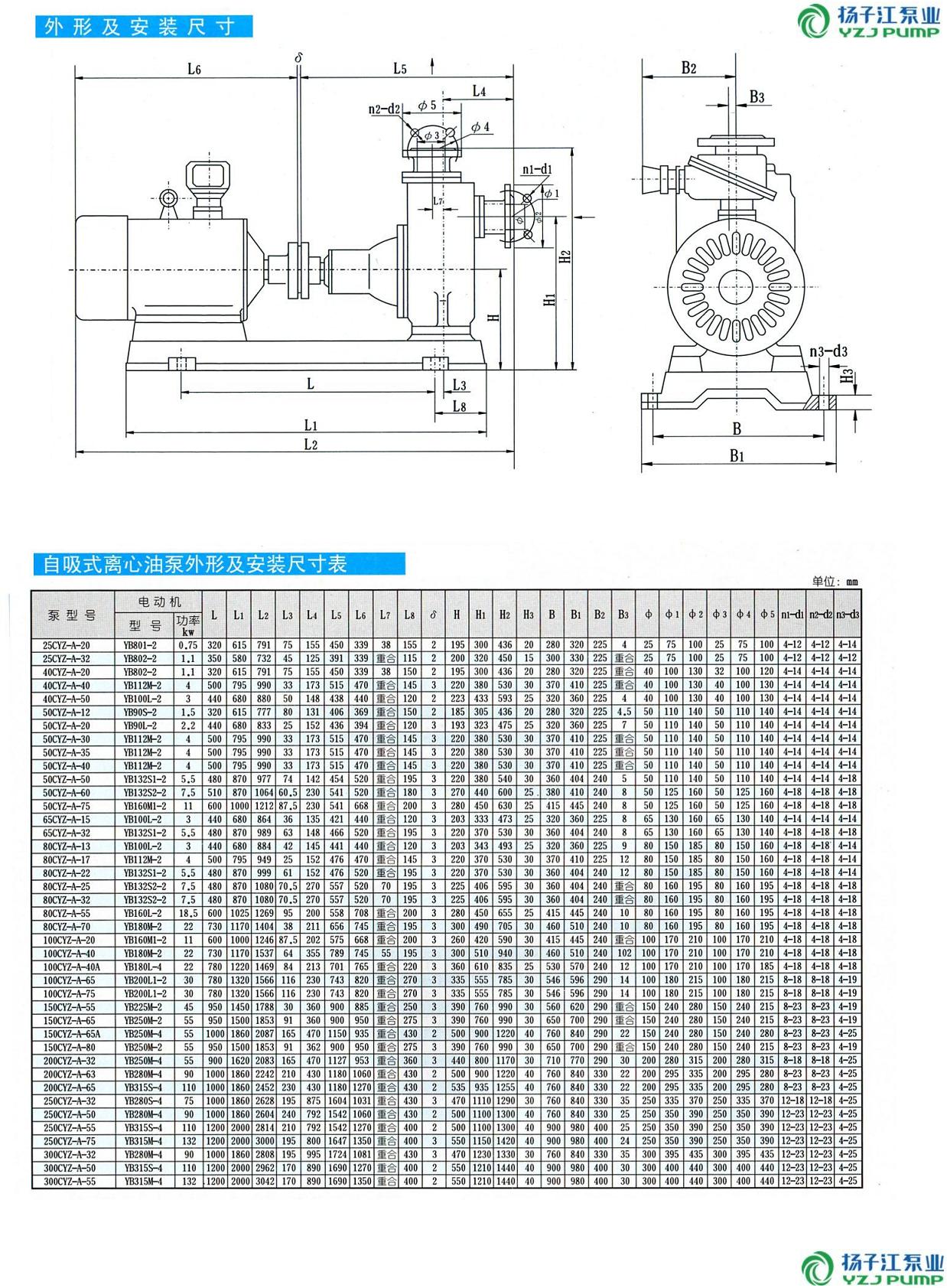 CYZ-A型自吸式離心油泵(安裝尺寸)