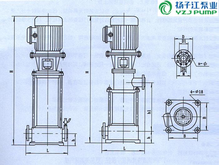 GDL型立式多級(jí)管道離心泵安裝尺寸圖: