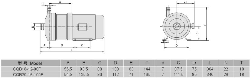 CQB-F系列全氟襯氟磁力泵性能參數(shù)型號(hào)意義安裝尺寸