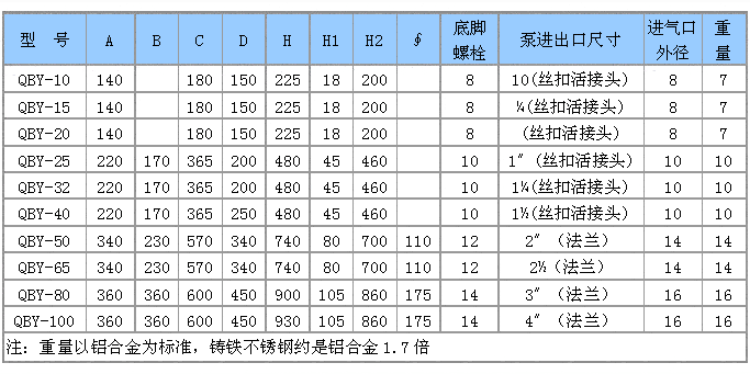 QBY型氣動隔膜泵外形安裝尺寸表: