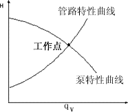 在泵葉輪轉(zhuǎn)速一定時,一臺泵在具體操作條件下所提供的液體流量和壓頭可用qV-H曲線上的一點來表示。至于這一點的具體位置,應(yīng)視泵前后的管路情況而定,討論泵的工作情況,不應(yīng)脫離管路的具體情況。 |