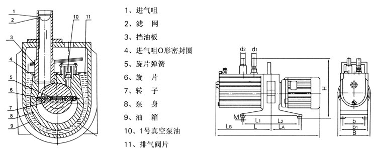 2XZ-2型直聯(lián)旋片式真空泵的結(jié)構(gòu)圖及安裝尺寸圖