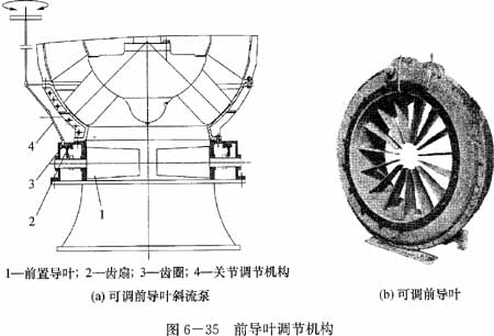 可調(diào)前導(dǎo)葉和可調(diào)前導(dǎo)葉泵的結(jié)構(gòu)簡圖,如圖6-35所示。