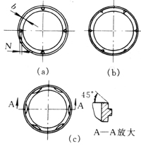 在兩個(gè)密封環(huán)之一的密封端面開有各種溝槽,由于旋轉(zhuǎn)而產(chǎn)生流體動力壓力場,引入密封介質(zhì)做為潤滑劑 |