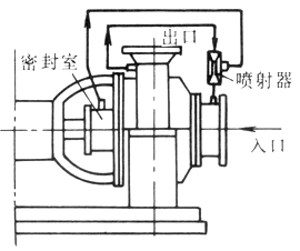 在泵的出口處引出流體高速通過(guò)噴射器,將密封腔內(nèi)泄漏的流體吸入泵的入口處,達(dá)到密封的目的,但需設(shè)停泵密封裝置