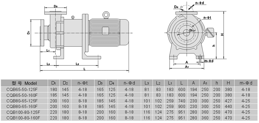 氟塑料磁力泵安裝尺寸圖