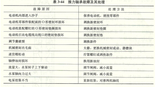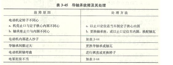 查明原因,對(duì)電動(dòng)機(jī)進(jìn)行維護(hù)保養(yǎng)。表3-44推力軸承故障及其處理