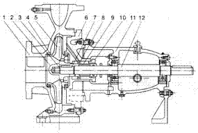 機械密封:單端面機械密封和雙端面機械密封兩種型式,密封腔內通入一定壓力的水,沖洗磨擦兩端面,同時起冷卻作用。