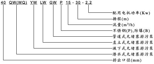 液下式無堵塞排污泵型號意義