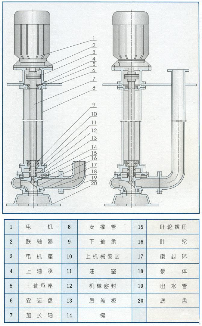 3、泵為立式結(jié)構(gòu),工作時泵體浸在液體中,因而很容易起動,不存在排氣抽空問題,同時具有無泄漏等特點,液下深度可達(dá)0.5-7米。