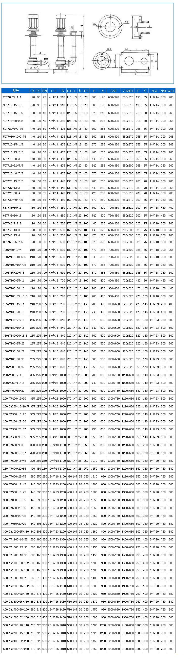 液下式無堵塞排污泵性能參數(shù)