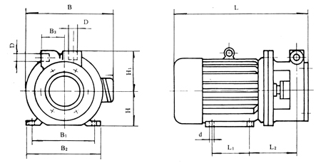 本泵采用泵與電機(jī)直聯(lián)結(jié)構(gòu),其進(jìn)水口為水平方向,吐出口垂直向上。 從泵端看,泵為逆時(shí)針轉(zhuǎn)動(dòng)。 葉輪可在懸臂軸上自由滑動(dòng),運(yùn)轉(zhuǎn)時(shí)能自動(dòng)調(diào)正葉輪二面的間隙,外隔板可借助于葉輪上的二螺孔與葉輪一起拆出葉輪,內(nèi)隔板采用9-4鋁鐵青銅,軸采用不銹鋼,填料采用新型密封材料柔性石墨。 本泵性能穩(wěn)定,結(jié)構(gòu)得意,拆裝方便。