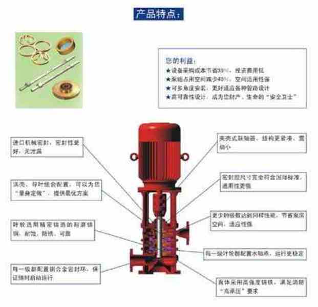 XBD-L型立式多級(jí)消防泵系立式單吸多段式離心泵,供輸送不含固體顆粒的清水及物理化學(xué)性質(zhì)類似于水的液體之用。主要用于消防系統(tǒng)增壓送水,也可用于廠礦給排水。輸送液體的流量范圍為5~80L/s,壓力范圍為0.2~2.25MPa,配套功率范圍為1.5~200kW,口徑范圍為φ50~φ200mm。