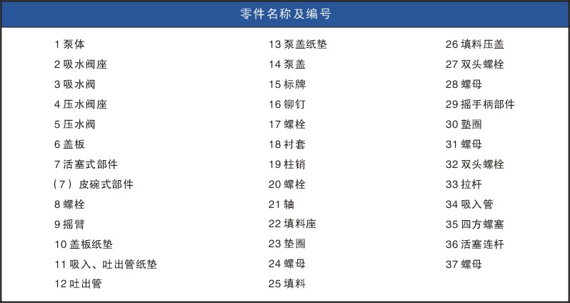 每臺水搖泵有四只水閥,即吸水閥及壓水閥各二只,都裝在泵體上,只要拆除蓋板螺母,就可取出(參看水閥示圖)。