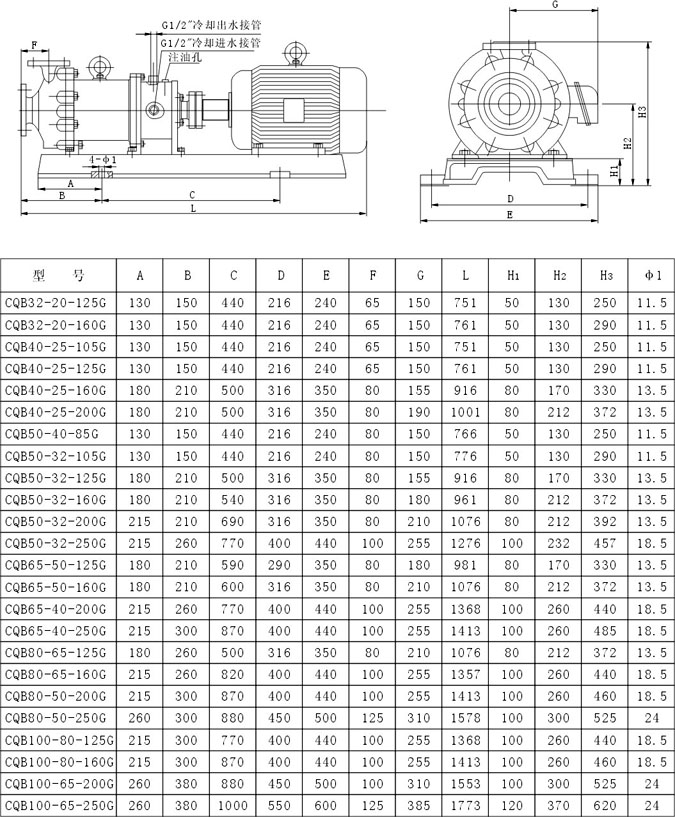 CQB-G高溫磁力驅(qū)動泵性能參數(shù)